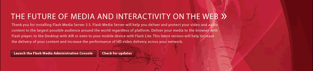 Adobe® Flash® Media Rights Management Server lets you protect valuable media content to Adobe Media Player and Adobe AIR™ applications. Learn more >